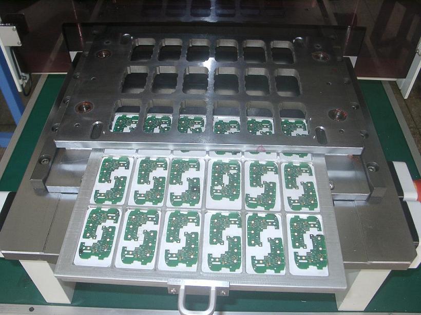 PCB分板机/邮票孔分板机|分板机冲床分板机软板分板机软性线路板 根据PCB或FPC样板来设计配套模具, 采用优质钢材加工,通过处理,电镀等工艺制造。 特别对异形线路板分割,效率高。是冲裁出的产品达到合格的要求, 整套模具结构保用30万次。 应用于电子行业如手机板,内存卡,手机软线路等分割。 FPC/PCB分板模/邮票孔分板机