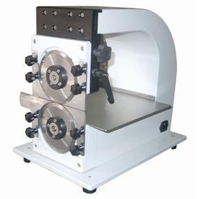 7、机器尺寸:420X 280 X 400mm 灯条分板机特点: 1、机体为铝合金连体铸造轻巧一体,不占空间,操作简单,速度快捷。 2、上下刀距离可准确调整,解决V-CUT深浅问题,将切板时所产生的内应力降至最低而避免锡裂现象。 3、上下圆刀可精准调节,凡有V-CUT之PCB板和铝基板皆可适用于此机器分切。 4、马达为上海著名品牌配套服务,整机保养简单。 5、刀具采用德国进口钢材,台湾专业制刀公司定做,耐磨损,寿命长,刀片可重复研磨使用。 6、表面蓝色喷涂粉体烤漆为特殊工艺,不易脱落